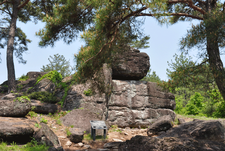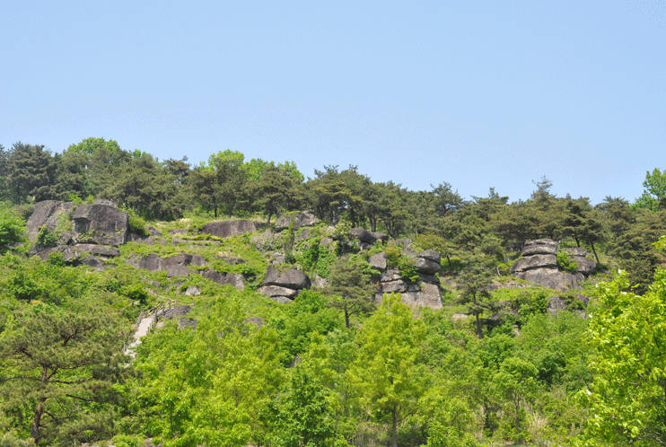 斗笠岩采石场如同戴斗笠人的形象,故称为斗笠岩.有为了采蓋石而挖的洞痕和采下蓋石后斜立在岩壁旁的石材.在斗笠岩前被发现了纺锤轮、无纹土器等青铜时代遗物和三国、高丽、至朝鲜时代土器和瓷器.可以推测在很长时间被人们利用于许愿民间信仰的对象.