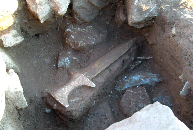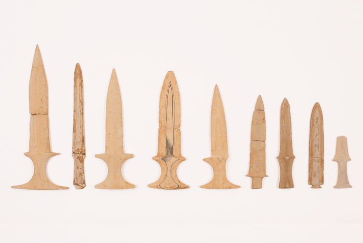 以支石墓副葬品而发现的石器,以磨制石剑和磨制石镞为代表.磨制石剑一般只副葬一件,磨制石镞往往发现数支.发现的石镞如果是副葬品往往和磨制石剑一起出土,一般多在腹部附近发现3~5支.但是也有,在全南宝城得峙里,磨制石剑和青铜镞一起被副葬29件,在庆南居昌大也里磨制石剑和石镞一起在一个墓室各自副葬28个和42支的例子.