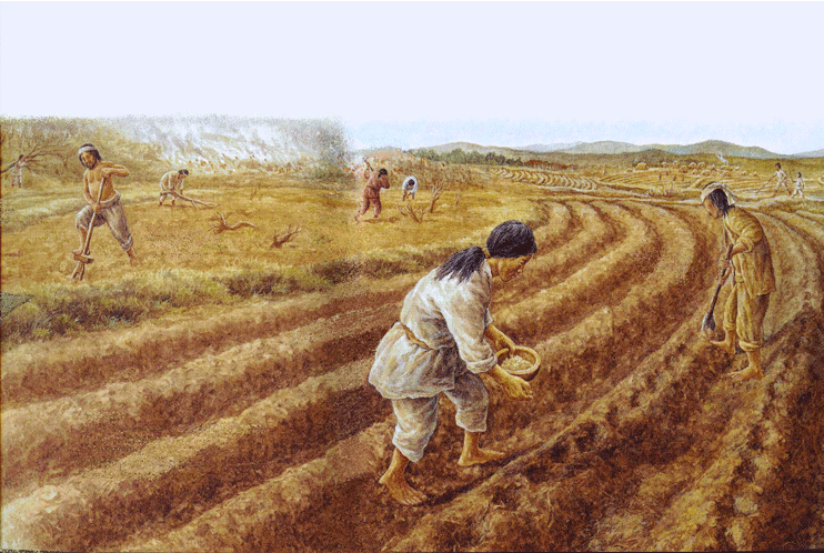 旧石器时代赖以生存的采集,到了新石器时代仍然是获取食粮的主要手段.特别因加工技术的发达,使橡子成为新石器以后我们祖先喜欢吃的食品.橡子被推测为先史时代的重要食粮,虽热量和营养价值很高,不逊于谷类,但大部分为去除从丹宁而来的涩味进行特殊处理.但采集时期只限于秋天,冬天贮藏在贮藏孔进行烹调. 而且证明橡子被用于食用的遗物为碾石棒和碾石,在住居址确认了很多.此外野生食用植物,代替蔬菜和主食、零食等而使用.