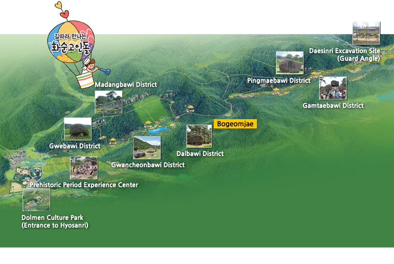Dolmen Culture Park (Entrance to Hyosanri)→Gwebawi District→Gwancheongbawi District→Dalbawi District
