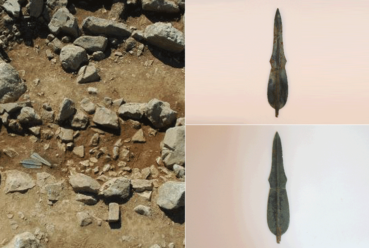 Bronze tools as weapons were rare and used by special class at that time and they include violin-shaped dagger, arrowhead and mirror. Bronze violin-shaped dagger excavated at the dolmen in the Geum river basin as well as in the Yeosu peninsula in South Korea. Slender bronze dagger was excavated at dolmens in Sangjapori site, Yangpyeong gun Gyeonggi province and Jangcheonri site, Yeongam.