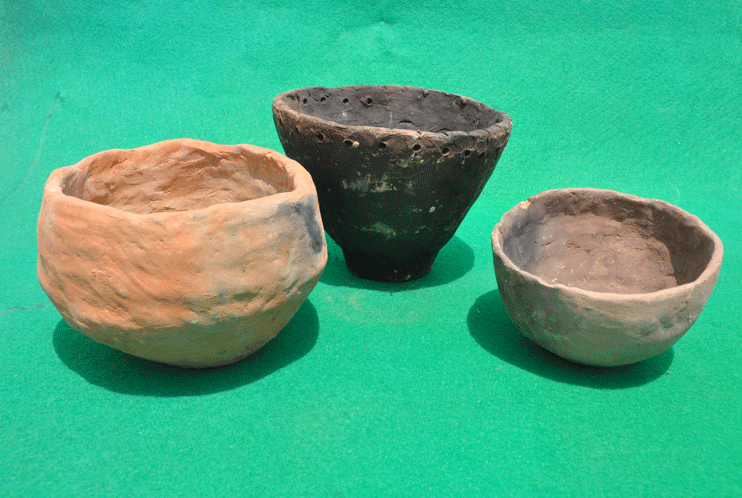 Potteries for storing and carrying crop grains, cooking, and serving food were specially made.