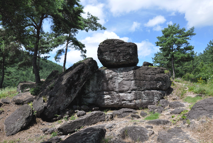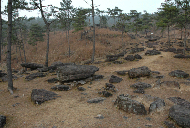 この岩壁の上には塊石型上石が採石された状態で置かれており、周辺に採石して後、積んでおいたように見える石材がある.このような状況からそこで上石を採石して後すぐに下に移して支石墓を築造したと考えられる.ここは上石の採石と墓の様々な形態など支石墓の採石から築造までの過程を1ヶ所で総合的に見せる活きた教育の場である.
