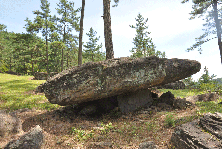 しかし、台風の影響でマツの木が倒れたことで上石が移動して埋葬主体部も完全に毀損してしまった.支石墓の大きさは長さ450㎝、幅310㎝、厚さ70㎝、重さは15トンで大型級に属し、上石の下には両長壁の石である大型板石2枚と短壁石1枚で支える卓子式支石墓である.今回復元された長さ140㎝、幅50㎝、高さ40㎝の埋葬主体部の上に載せられた上石は埋葬主体部の外側に1m~1.7m程度の軒をもつ雄大な姿を見せる.