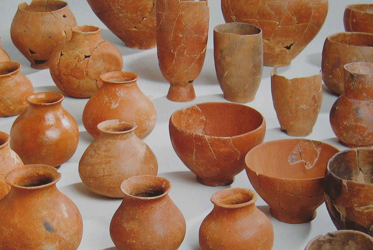 山野で拾って集めた木の実や農耕によって得られた穀物を保存するための壷、運搬用の壷、食べ物を料理するための器、料理された食べ物を盛るための食器、そして墓に副葬するための土器などが特別に製作された.