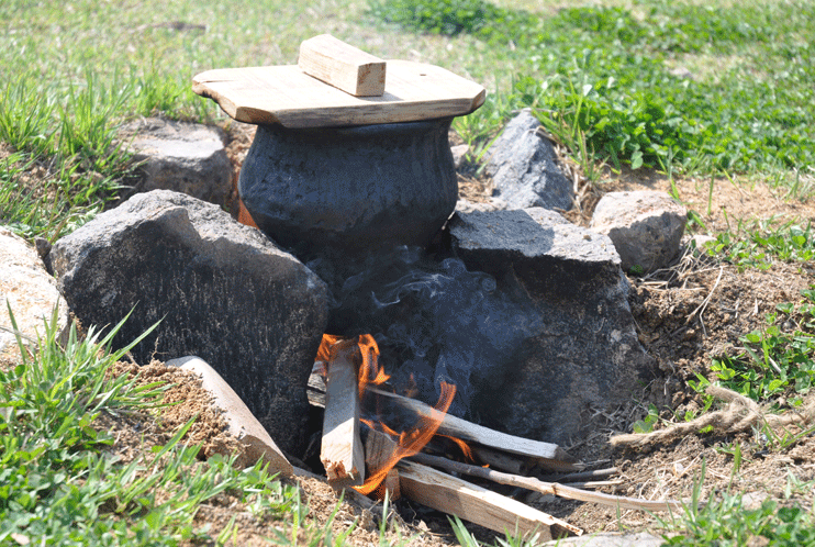 食べ物を調理するための器には高さ20㎝前後の小さな甕が使われた.